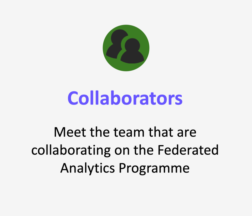 Federated analytics is a system where the data does not move, and instead the computer code the researchers write is sent to the data. Sometimes the dataset is made from lots of pots of data in different settings. For example, a dataset studying asthma might include data from several hospitals around the country. Instead of the hospitals sending all that data to one TRE (as described above), in federated analytics each hospital would build their own TRE and keep their data within that TRE.