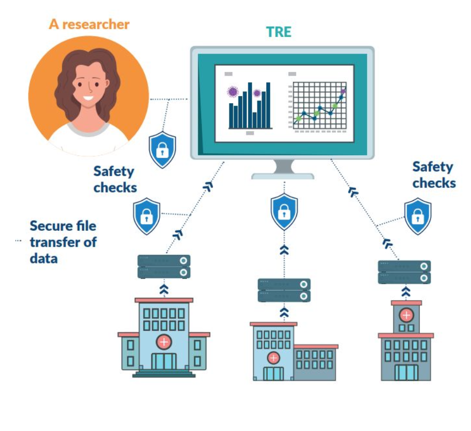 Researchers can apply to access and analyse the data using computer programs they develop. While TREs are secure, organisations must still follow legal requirements when sending data to a TRE.
